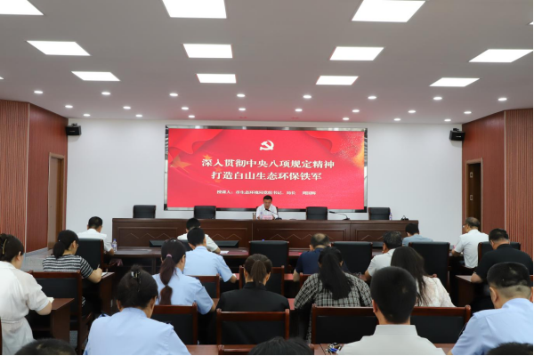 为庆祝中国共产党建党104周年,推进深入贯彻中央八项规定精神学习教育,白山市生态环境局开展庆“七一”系列活动,激励广大党员干部传承红色基因,凝聚奋进力量,以实际行动守护绿水青山、建设美丽白山。