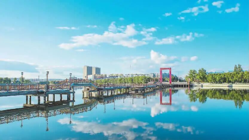 桦甸市辉发河故河道九曲桥清波荡漾。李克昊摄