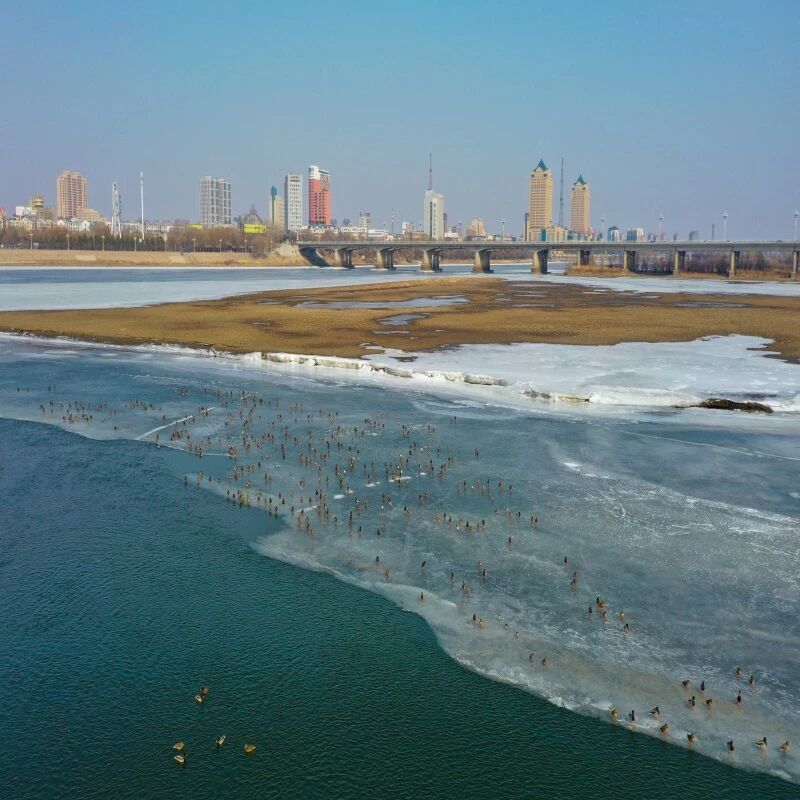 春光日暖,松花江松原城区江段冰雪消融、江水回暖,优良的生态环境吸引了大批候鸟栖息停歇。3月20日,记者在松花江大桥下看到,成群野鸭在江面游弋觅食、嬉戏追逐,为初春江畔增添勃勃生机。
