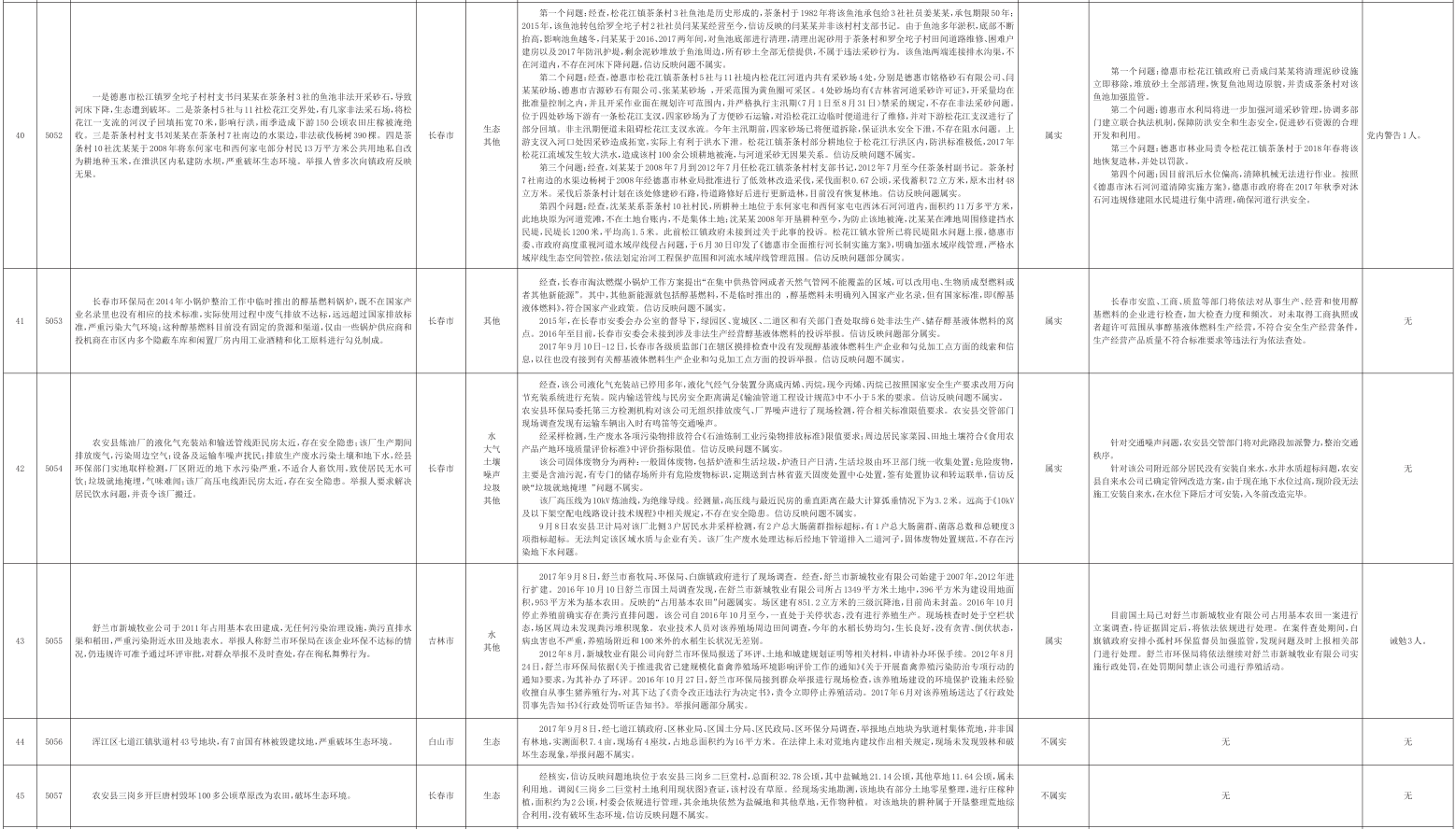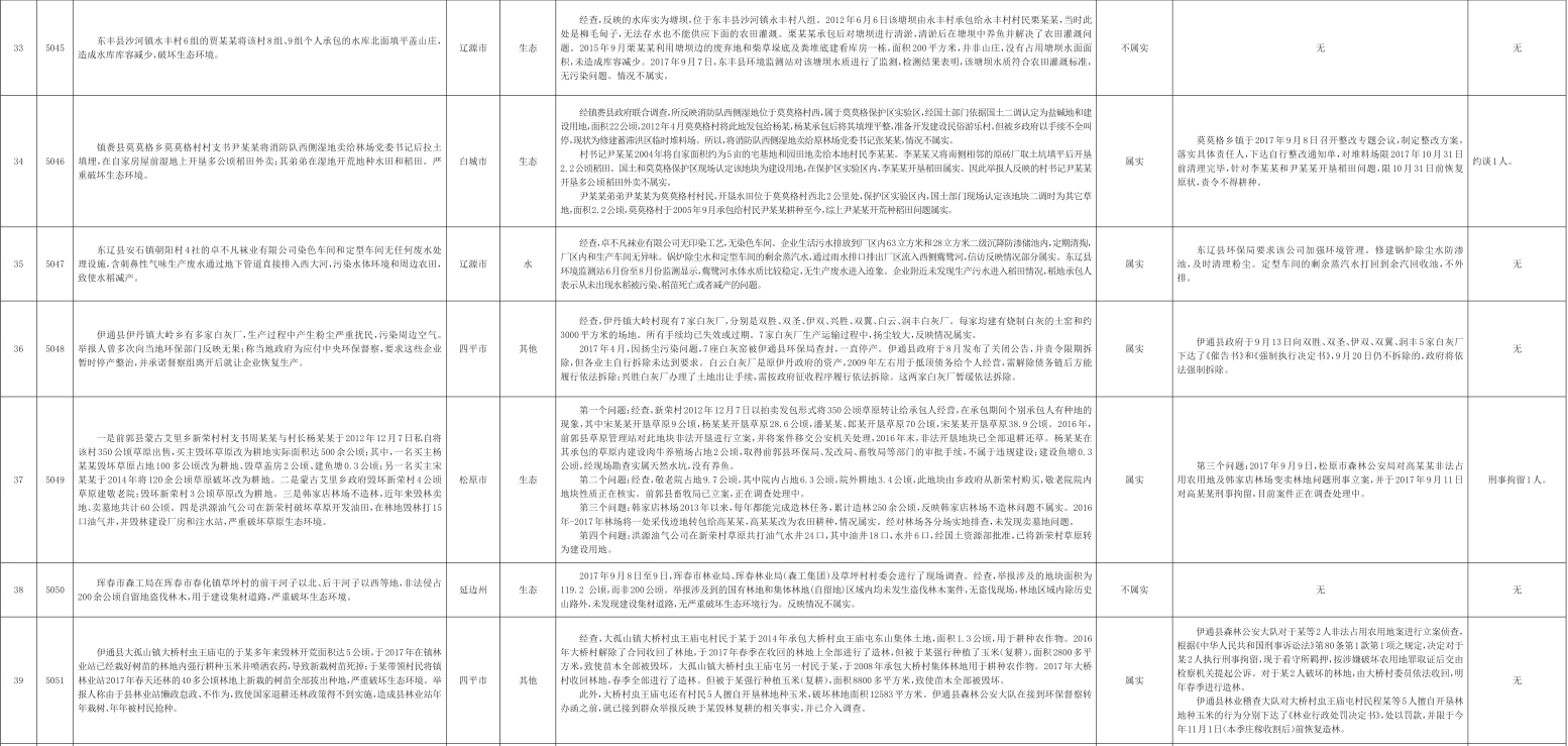 吉林省群众信访举报转办和边督边改公开情况一览表