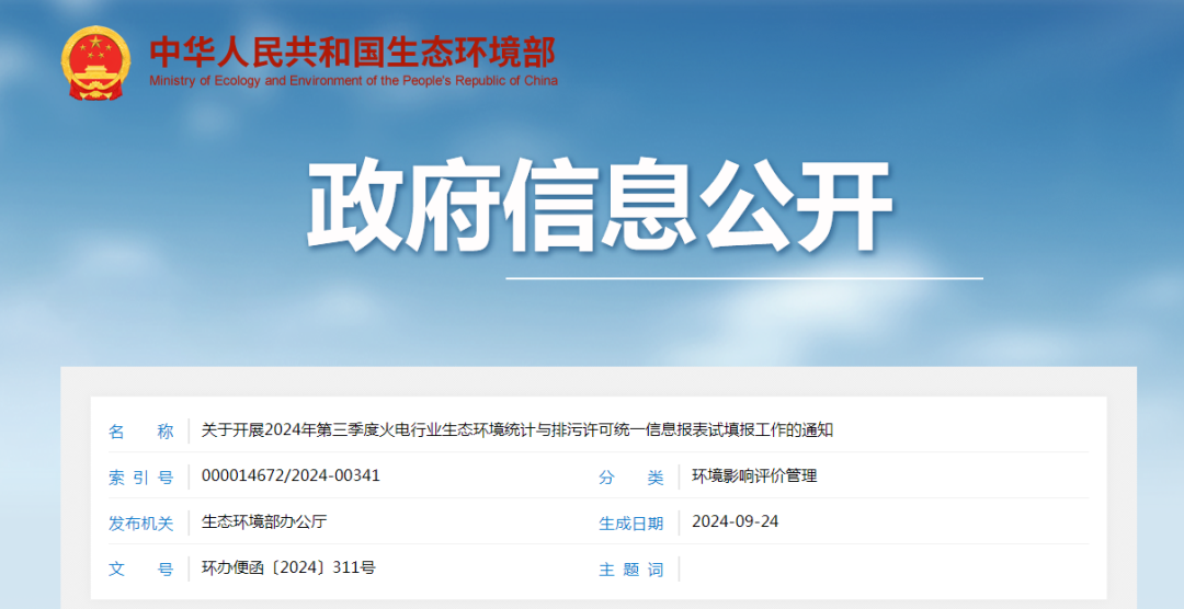 为贯彻落实《排污许可管理条例》《生态环境统计管理办法》,推动生态环境统计与排污许可制度衔接,实现固定污染源“一个口径、一套数据”。现以火电行业为试点,组织开展2024年第三季度火电行业生态环境统计与排污许可统一信息报表(以下简称统一信息报表)试填报工作。有关事项通知如下。